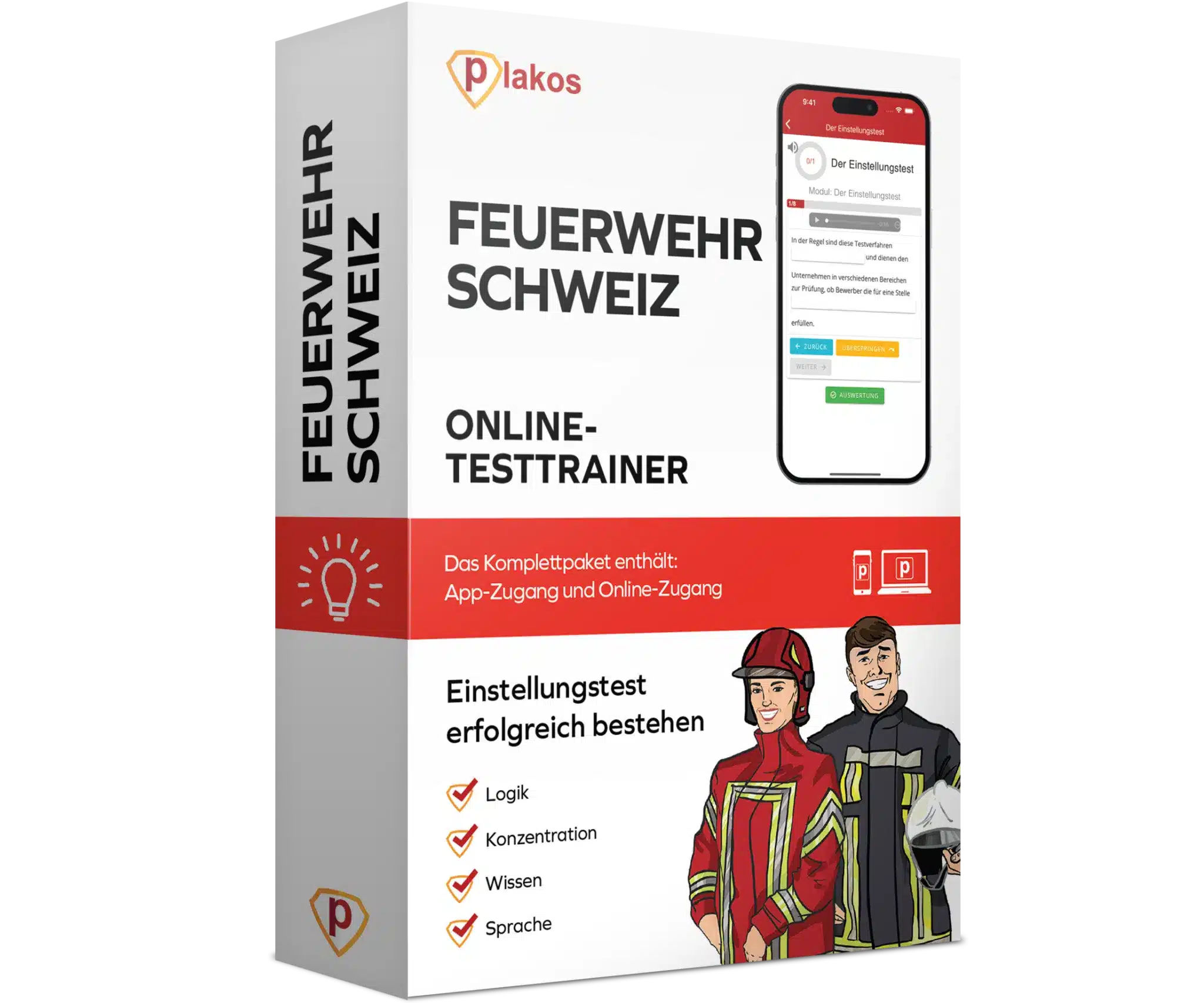 Unser Online Testtrainer führt dich durch die verschiedenen Disziplinen in den Eignungstest für die Feuerwehr in der Schweiz und bereitet dich optimal anhand interaktiver Übungen und Lernvideos vor.