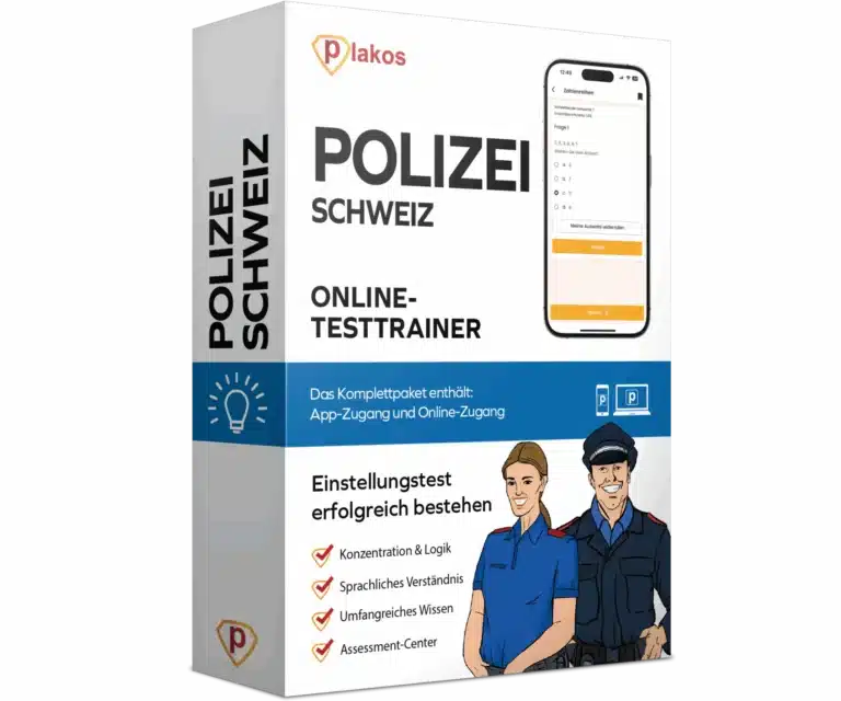 Der Polizei-Einstellungstest in der Schweiz läuft mehrstufig ab. Nach der Online-Bewerbung folgen ein theoretischer Eignungstest, ein Sporttest und ein Assessment mit persönlichem Gespräch. Abschließend gibt es eine medizinische Untersuchung und eine Überprüfung deiner persönlichen Eignung. Je nach Kanton kann der genaue Ablauf leicht variieren.