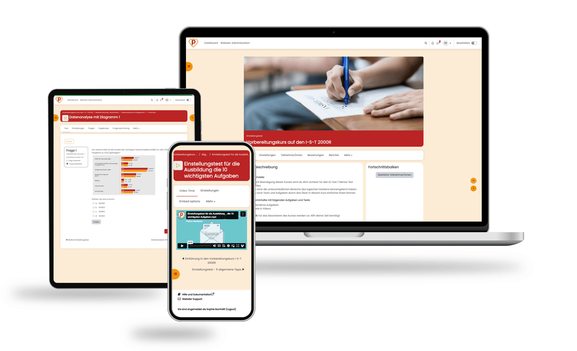 Die Plakos Akademie bietet tausende Übungsaufgaben für über hundert Berufe, Tests und Prüfungen.